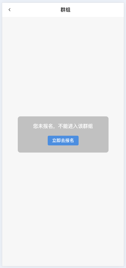 未报名用户尝试访问群组时,会看到“您未报名,不能进入该群组”的提示,并可点击“立即去报名”按钮跳转到商品购买页,完成转化闭环。