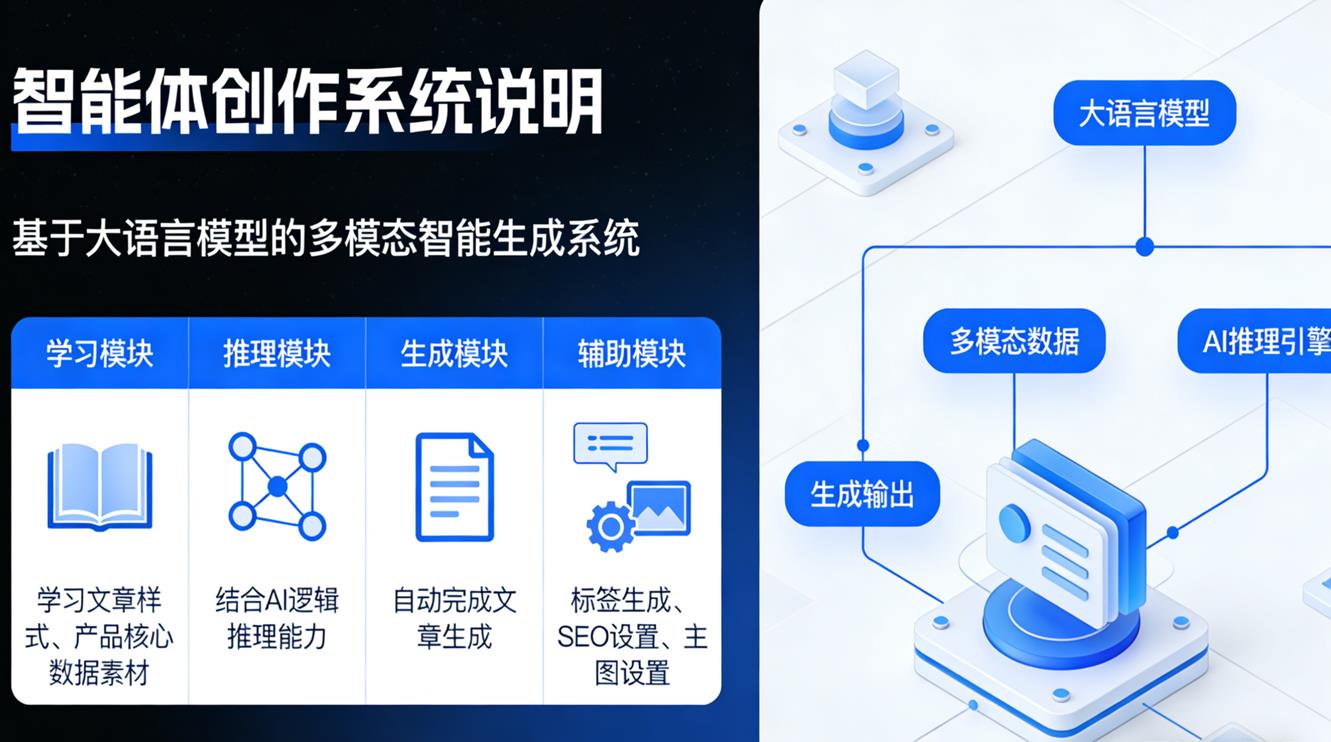| B2B企业官网与行业洞察 | 市场部选定公司一篇广受好评的行业白皮书作为“样例”,将新的“解决方案”或“案例”作为素材。智能体生成符合公司专业调性的行业分析文章或案例解读,用于内容营销和获客。 | 某SaaS企业:行业洞察内容产出效率与专业性同步提升,销售线索获取成本降低25% |