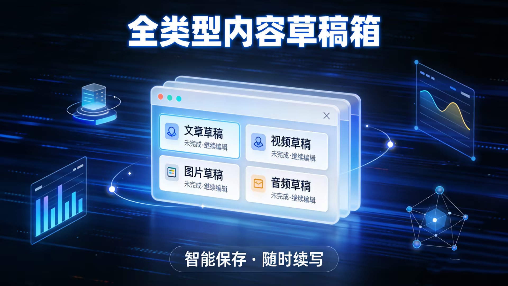 用户在所有支持的内容类型中享有相同的草稿操作体验(保存草稿/发布),无需记忆不同规则,体验一致,降低使用门槛。