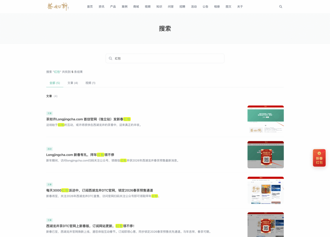 截图6:全站搜索页面 - 提供全局搜索框,支持对站点内所有内容类型(资讯、产品、案例等)进行关键词检索,返回整合的搜索结果列表。