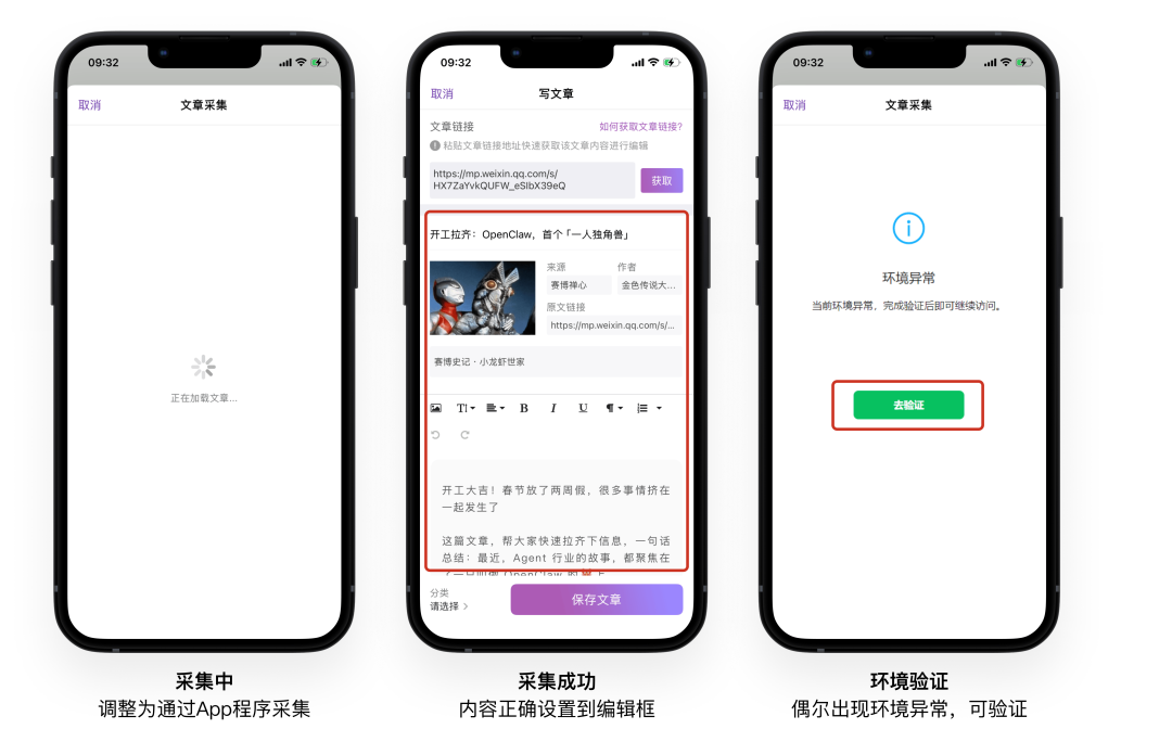 | 新媒体运营/自媒体 | 运营人员在通勤、出差等碎片化时间,需快速转载热点文章或内容到自有平台,抓住时效性。 | 移动办公利器,无需电脑,随时随地完成高效内容采集与发布,确保对热点内容的快速响应。 |