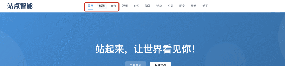 支持对默认导航栏目标题进行重命名(如将“资讯”改为“新闻”),使其更贴合站点内容分类。同时,可针对无数据或不需展示的栏目,通过“显示”开关一键隐藏,实现导航栏的个性化与精简。