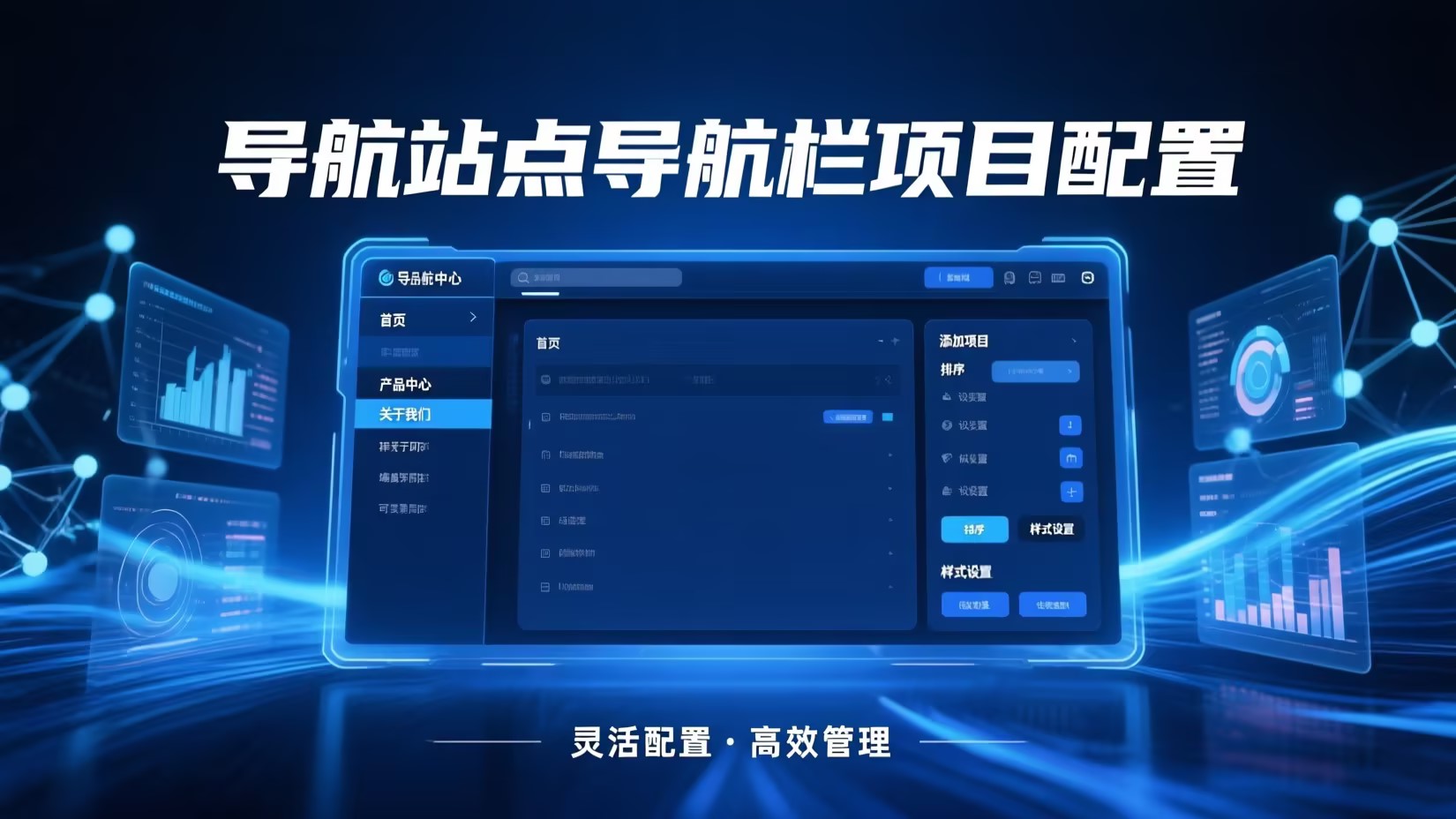 支持导航栏自定义命名、显示隐藏、拖拽排序、响应式折叠、外部链接添加及实时预览发布。