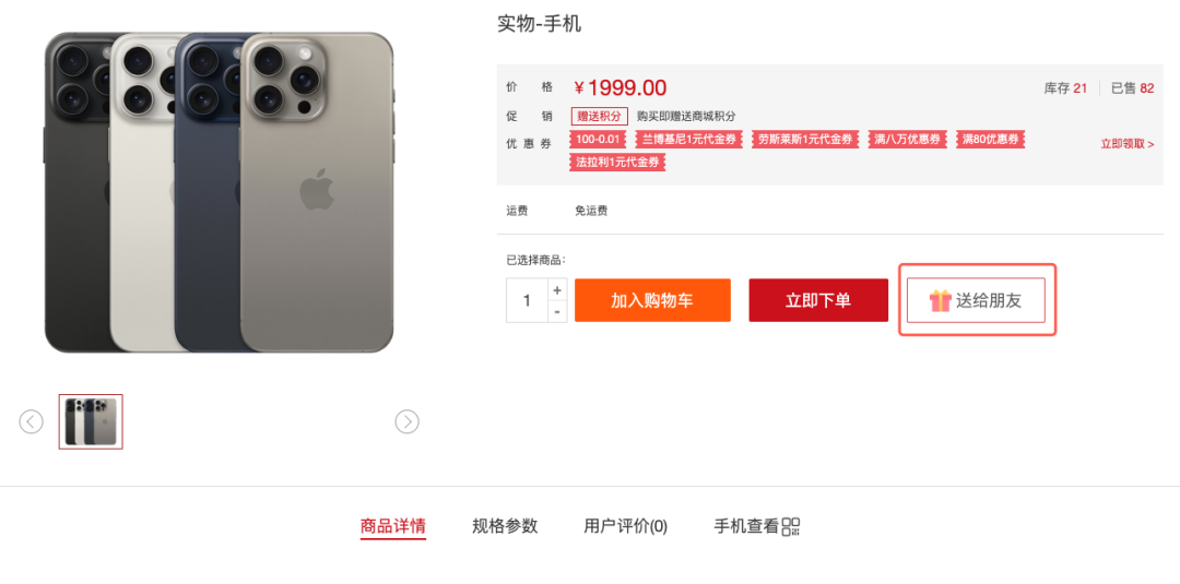 在PC端商城浏览商品,点击“立即购买”后,在下单页面找到并点击“送给朋友”按钮,进入送礼流程。