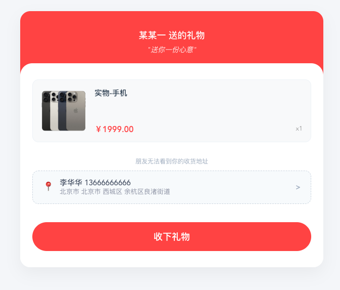 【好友端“收下礼物”页面(礼物预览与领取)】