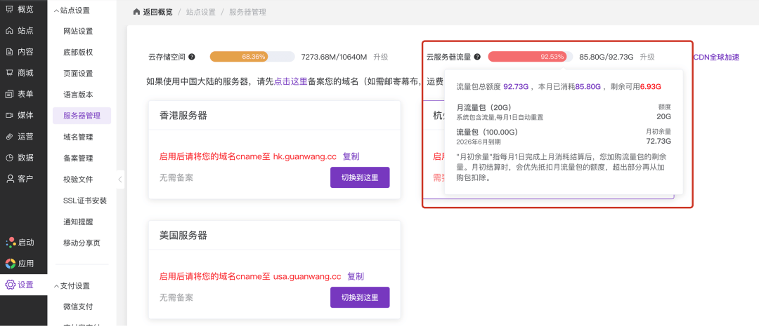 云计算/云服务提供商 CDN、云服务器、对象存储等服务商,向用户清晰展示所购流量包的消耗情况、剩余额度及下月结转规则。 显著降低用户因理解偏差而产生的客服咨询量,提升用户对资源使用情况的掌控感与透明度,减少潜在的账单纠纷。