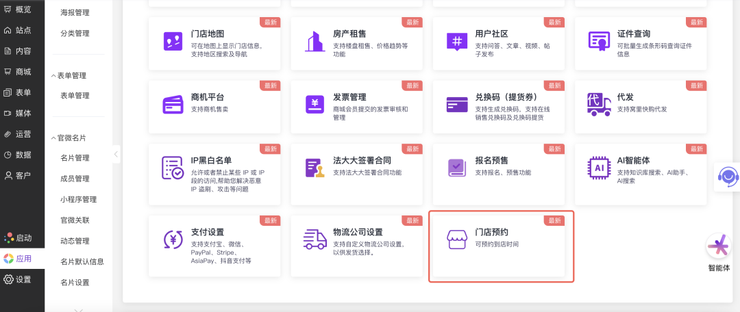 通过可视化设置界面,可快速开关功能、关联表单、配置通知、上传素材,无需技术开发即可调整预约服务的各项参数,满足不同门店、不同时期的运营需求。