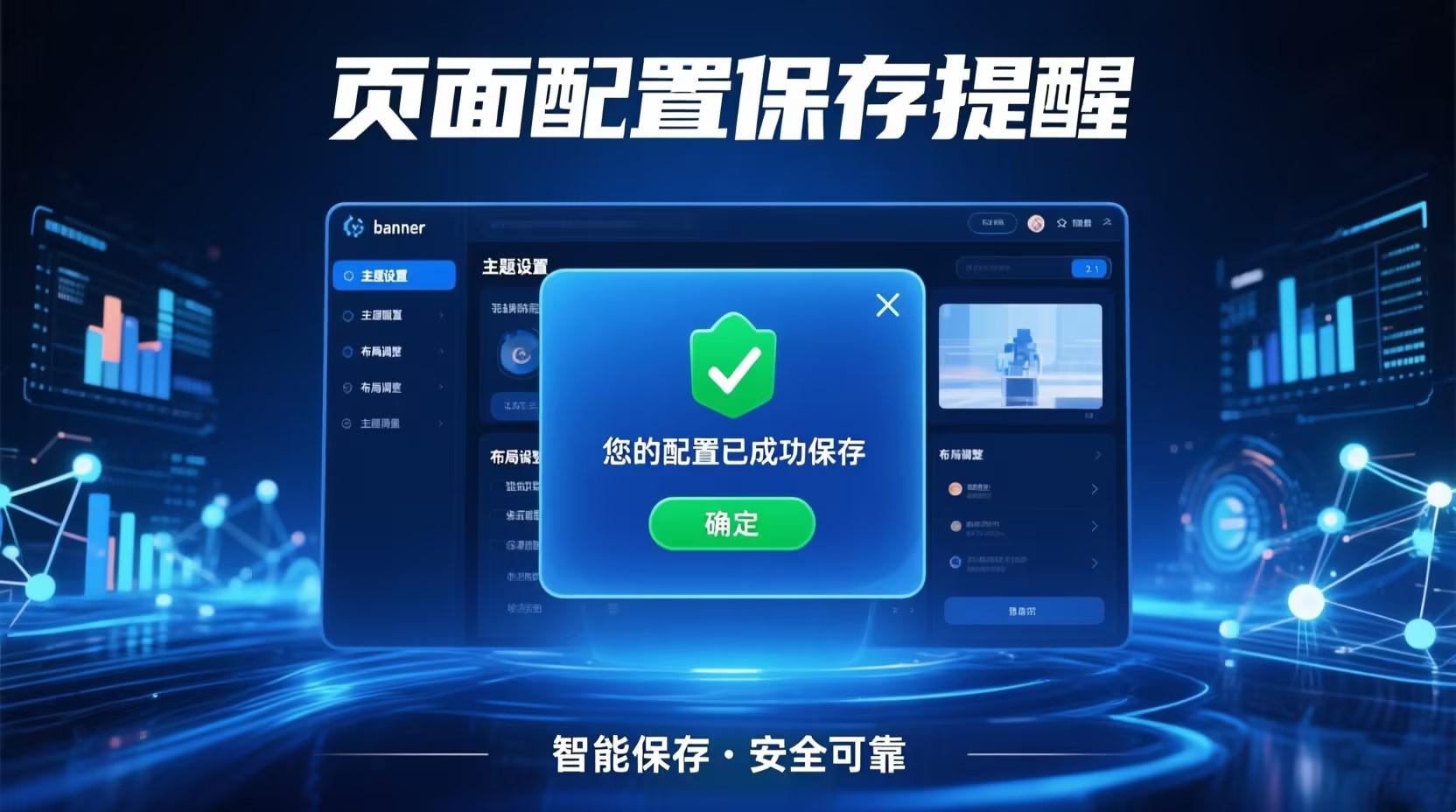 | 企业官网/后台系统运维 | 网站管理员在深夜或会议间隙快速调整导航菜单、首页推荐位后,因临时中断而忘记保存。醒目的悬浮条可确保其返回时第一时间发现未完成的操作,避免配置丢失。 | 有效防止因遗忘保存而导致的重要配置变更丢失,确保每一次修改意图都能被准确执行,保障网站内容的准确性和运维工作的可靠性。 |