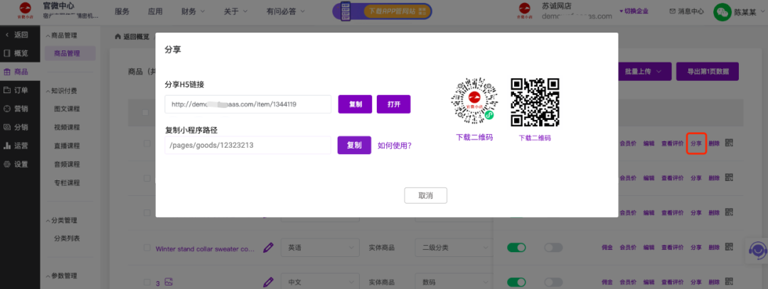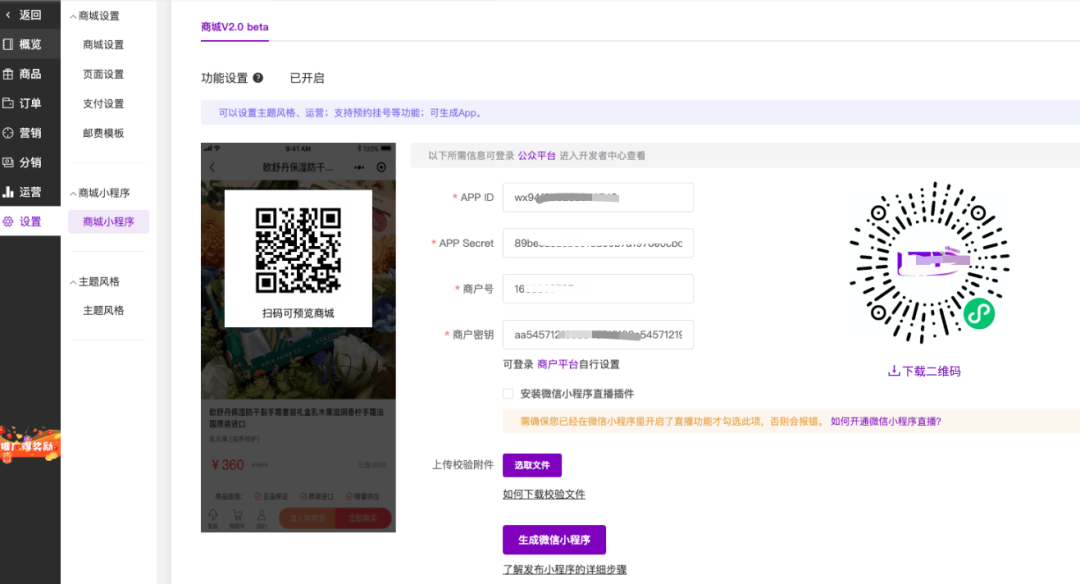 通过"设置 - 商城小程序"进入小程序生成配置页面