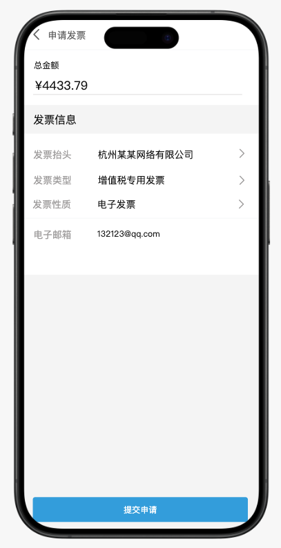从抬头设置、提交申请、后台审核到最终用户查看/下载发票,全流程在线完成,实现了无纸化、自动化处理,显著提升了平台财务处理效率和用户体验。
