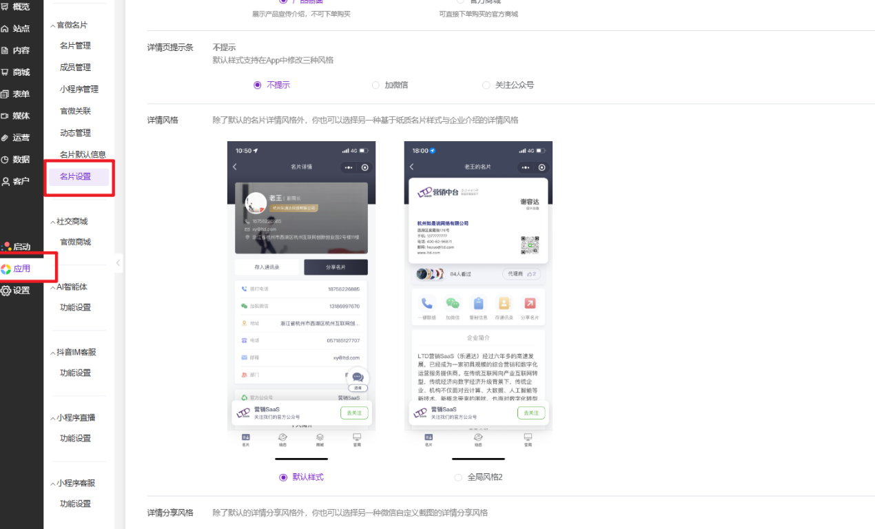 全新的名片详情风格样式更加现代、简洁的详情风格,强化企业介绍、企业VI的展示!