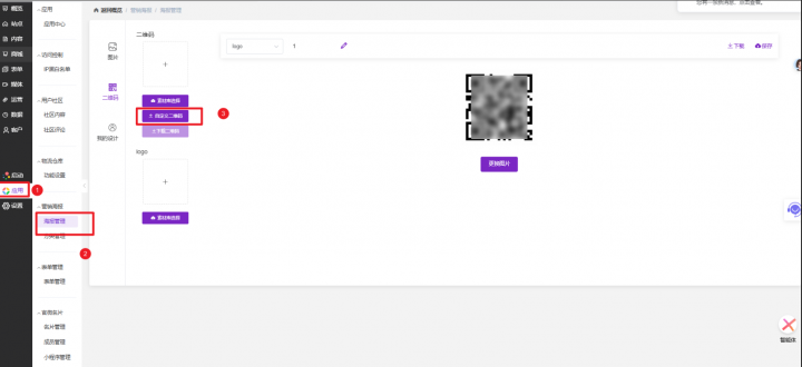 自定义二维码可在中间添加Logo,提升品牌辨识度。操作路径:官微中心→应用→营销海报→海报管理→二维码→自定义二维码→上传Logo→生成并保存。