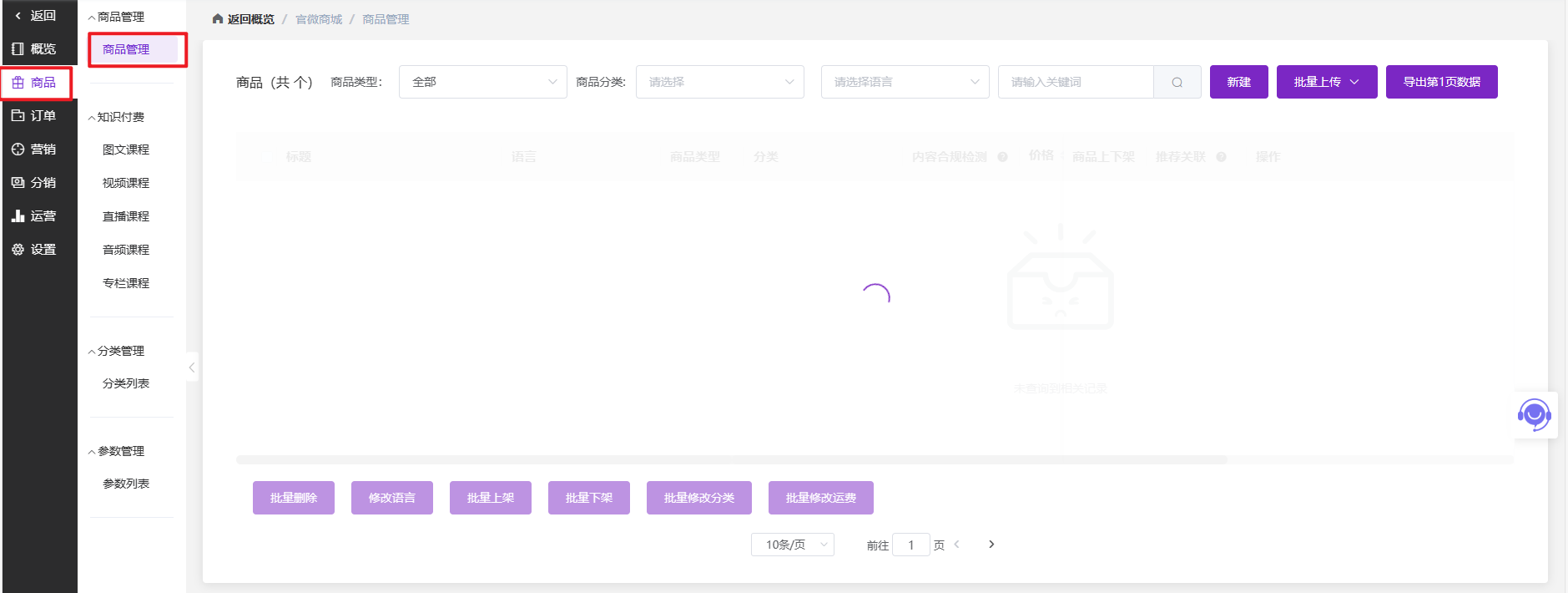 进入营销枢纽后台,点击【商城】—【商品管理】(*本功能仅支持商城网站云及以上系统),如下图所示: