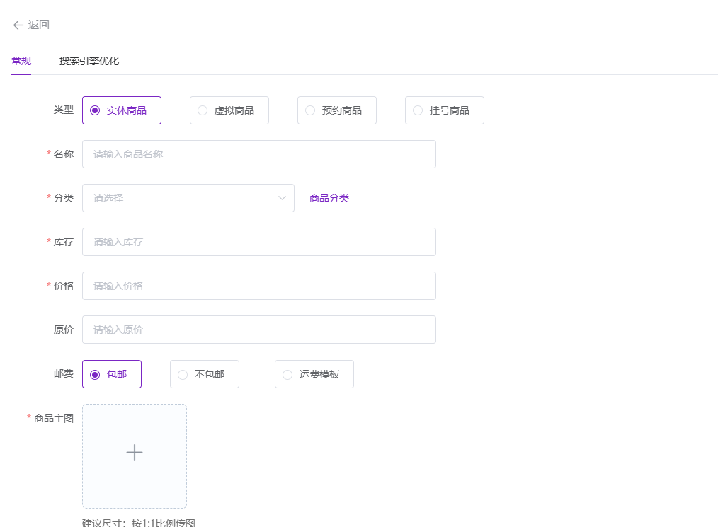 点击【新建】,根据商品类型选择合适的模板,按照系统提示填充商品信息,带有*号为必填项:
