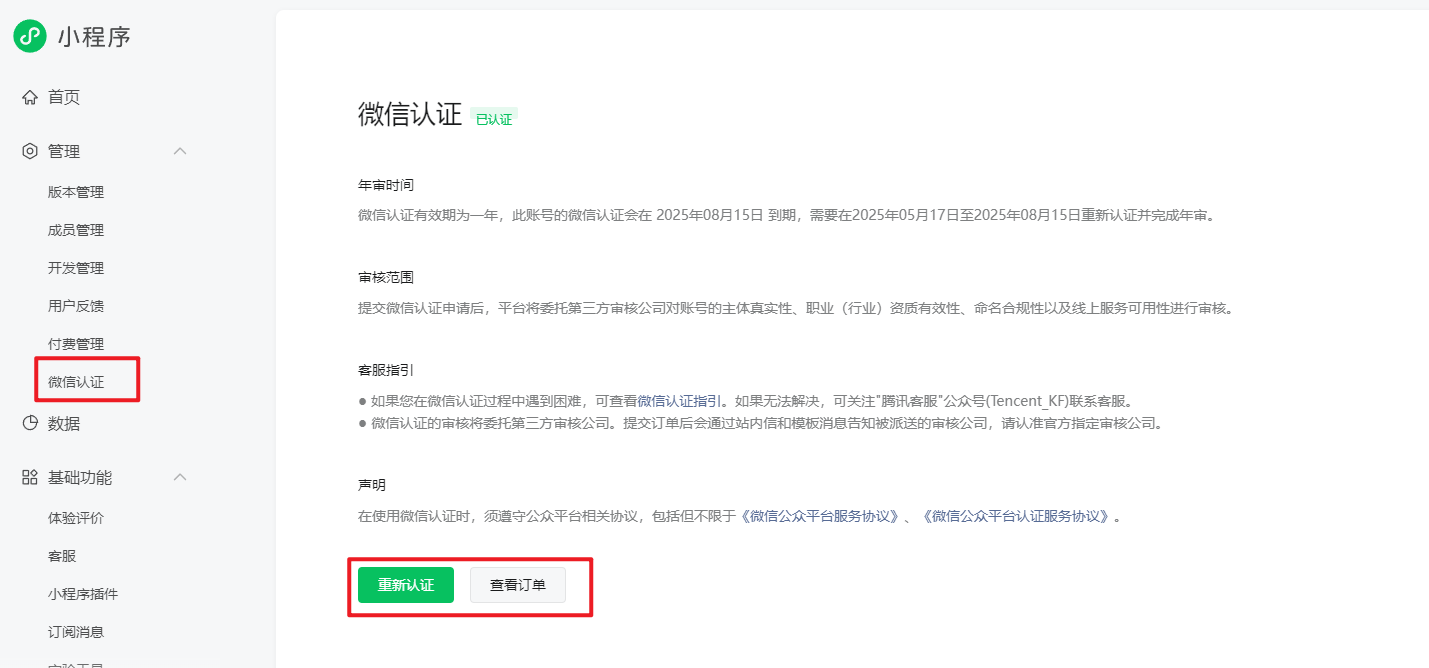 登录微信公众平台,进入对应的小程序账号后台,在账号设置或认证相关页面中查看当前认证状态。如果账号显示为“未认证”或“认证已过期”,说明当前账号不具备完整的分享与传播能力。
